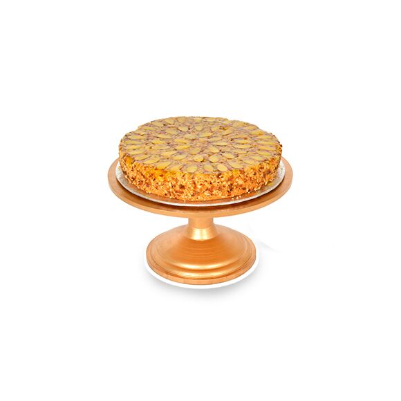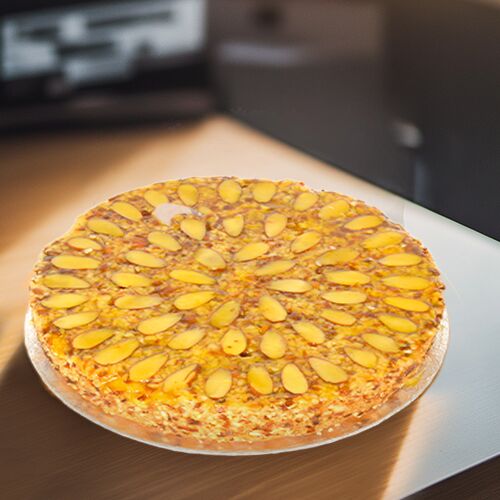 Heavenly almond cake with a soft center topped with delicious jam and toasted almonds. It is a perfect pair for your tea or milk.