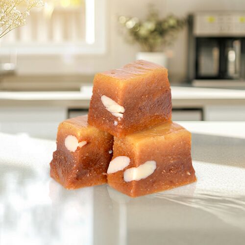 A rich confection made from almonds, sugar, and ghee. It has a dense and deliciously gooey texture.