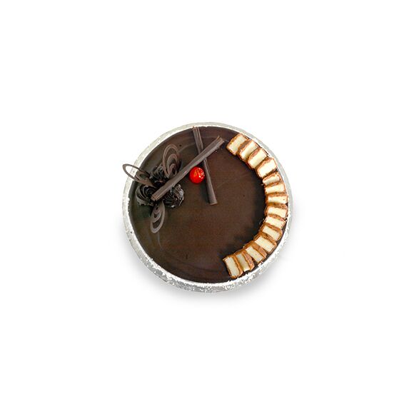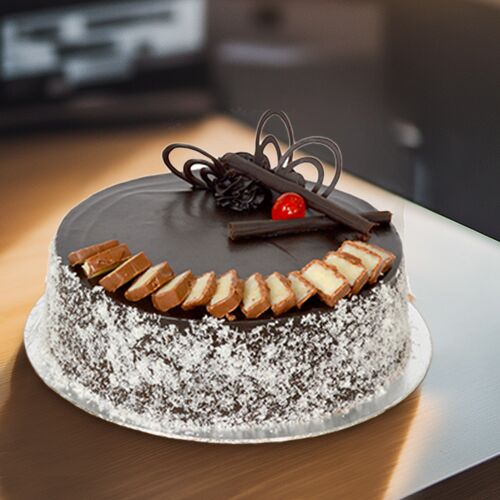 A rich chocolate cake topped with smooth chocolate ganache and bounty chocolate pieces.